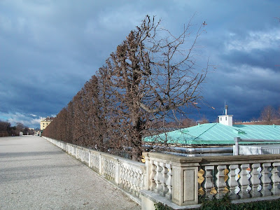 We met Herta at Schloss Schonbrunn, the summer palace of the Hapsburgs with only 1,441 rooms. AND with 1,441 rooms, they had no kitchen! The kitchens were in another building and the food had to be transported by carriages to the Schloss and of course kept warm on the way. We walked around the grounds and up to the Gloriette - a Roman looking structure where the royalty used to have breakfast sometimes. We sat there and had coffee, but saw no kings or queens there.